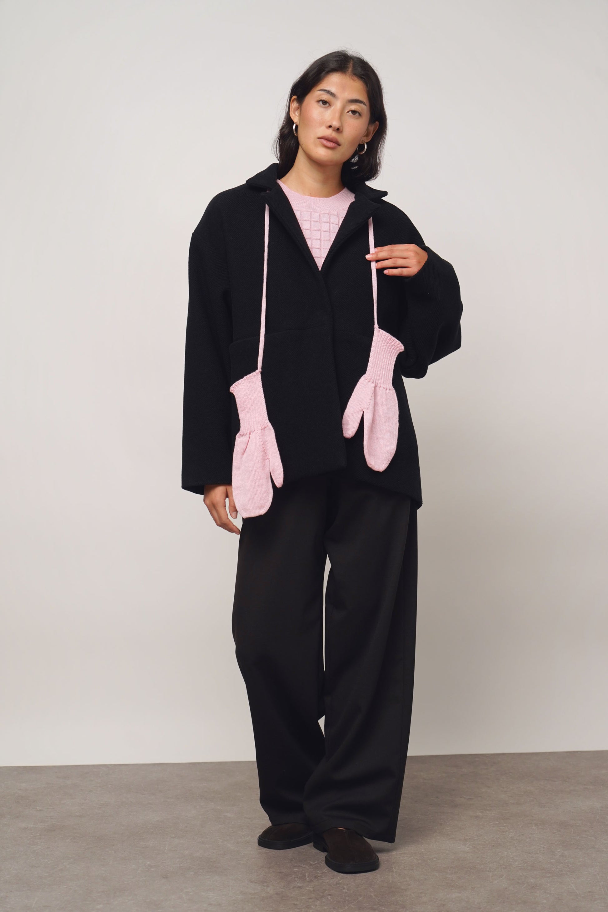 Lieblings Jacken-Schnitt mit Kragen und Revers, weiten Ärmeln und einer Teilungsnaht mit integrierten Taschen. Gefertigt aus einem hochwertigen, weichen Wollstoff mit Twillstruktur. Der Mantel kann hochgeschlossen mit Stehkragen getragen werden oder mit dem obersten Knopf offen und umgelegtem Revers. Verschluss mit 3 Druckknöpfen. Limitiert auf 10 Stück.